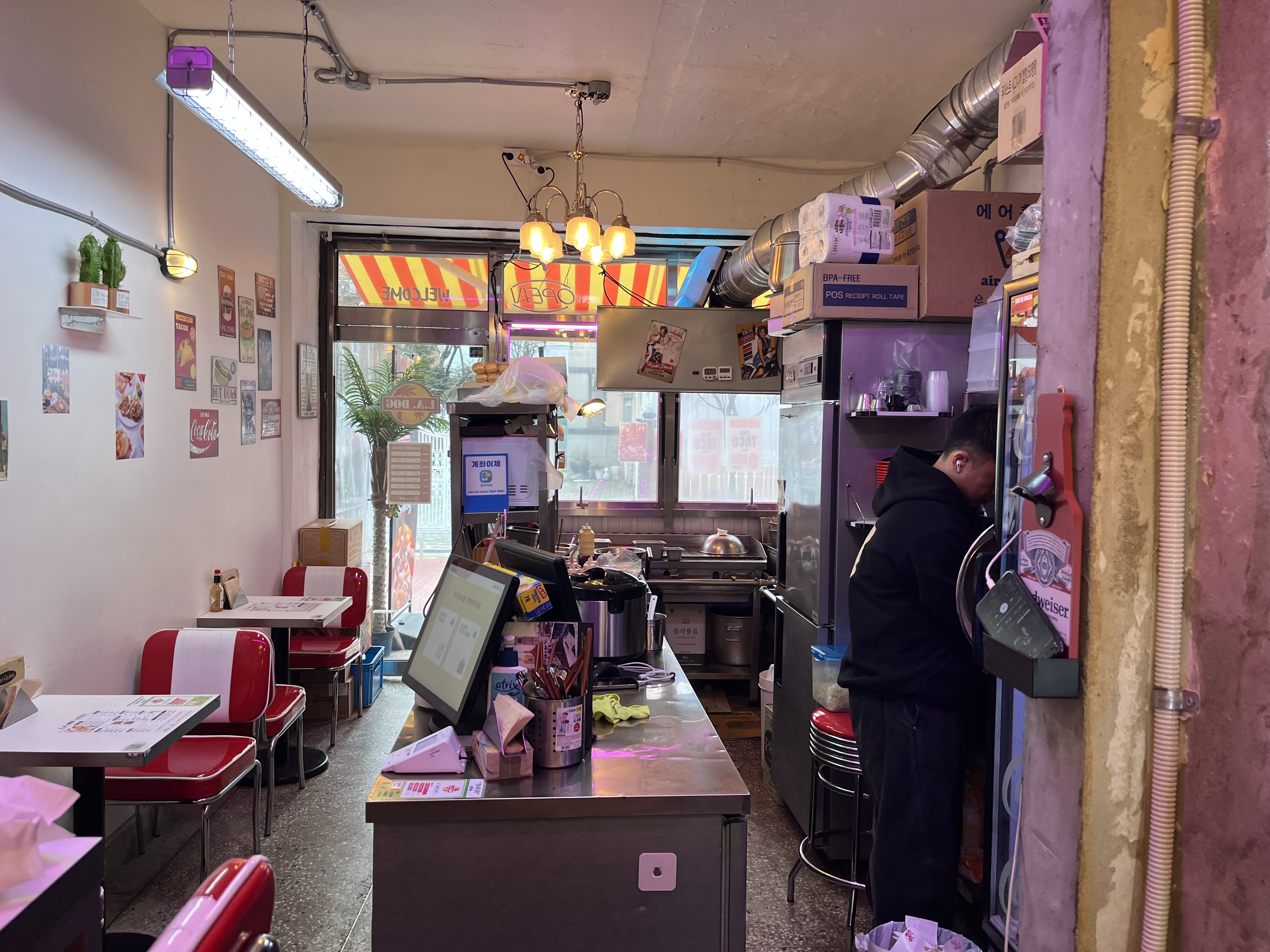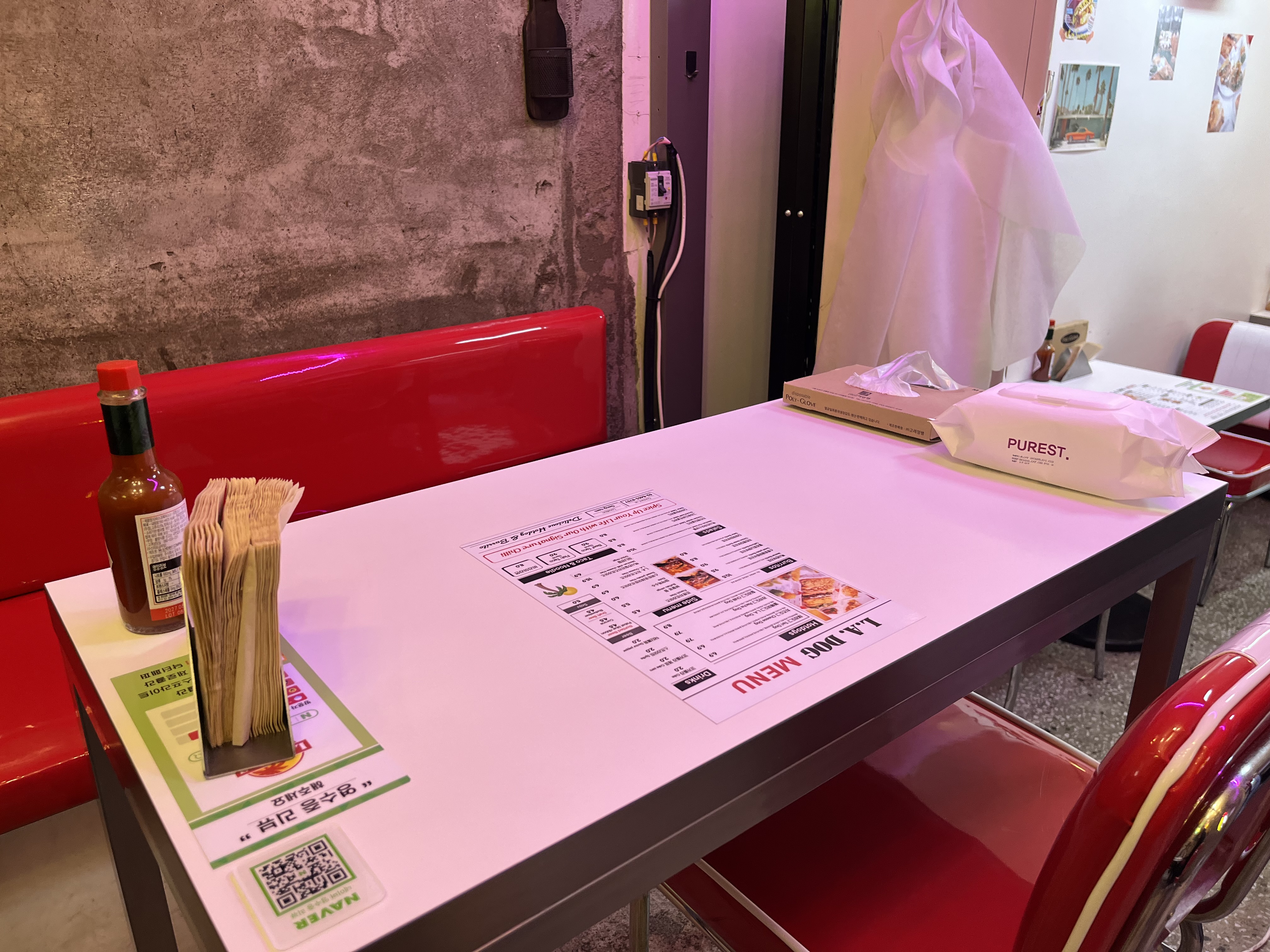 복도에 있는 테이블은 생각보다 좁아서 겨울 옷의 빵빵함이 살짝 불편할 수는 있을 거 같아요.