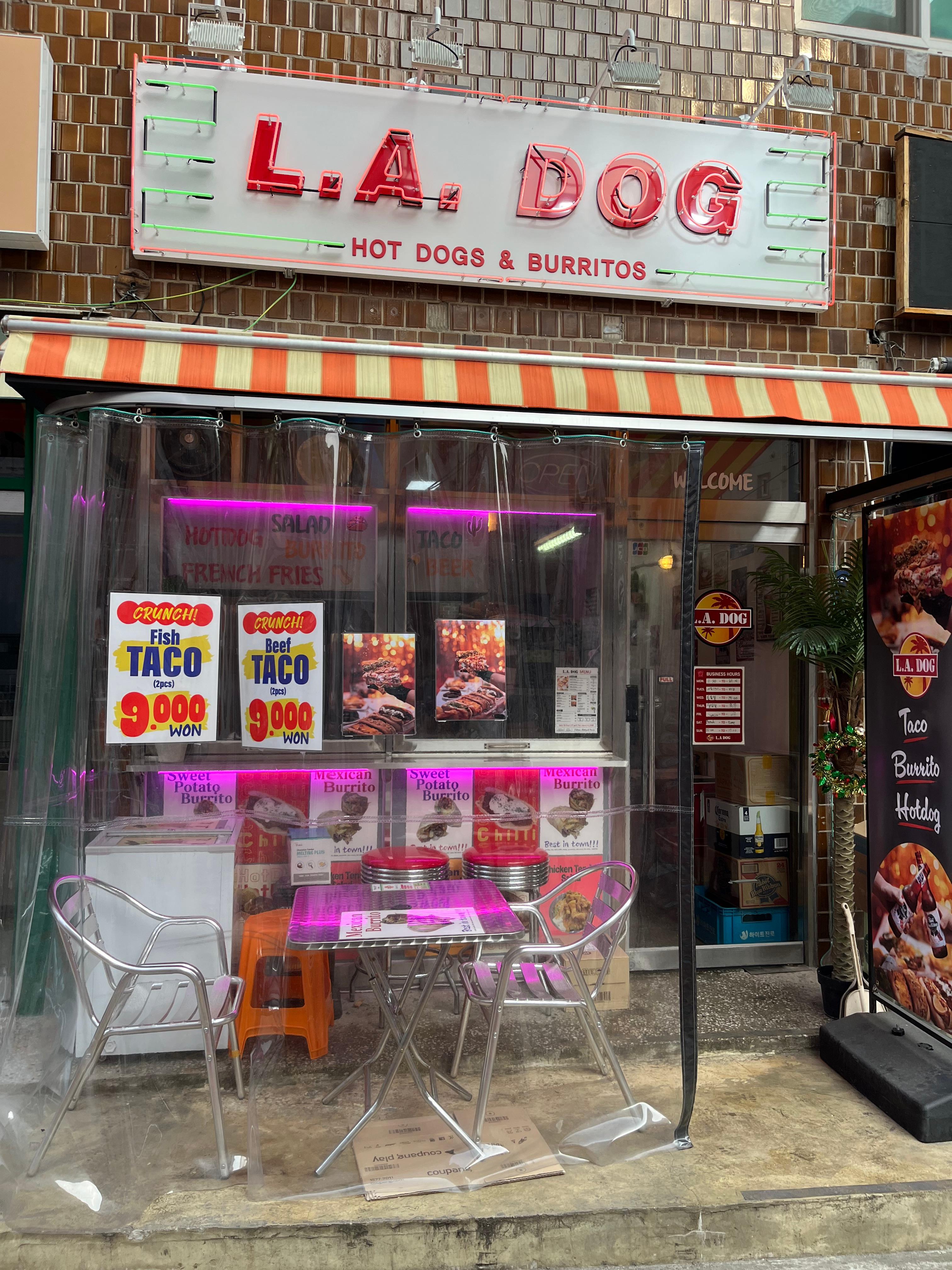 9호선 라인에 더 가까운 쪽으로 나오면 엘에이도그 매장으로 가는 길이 가까워요.